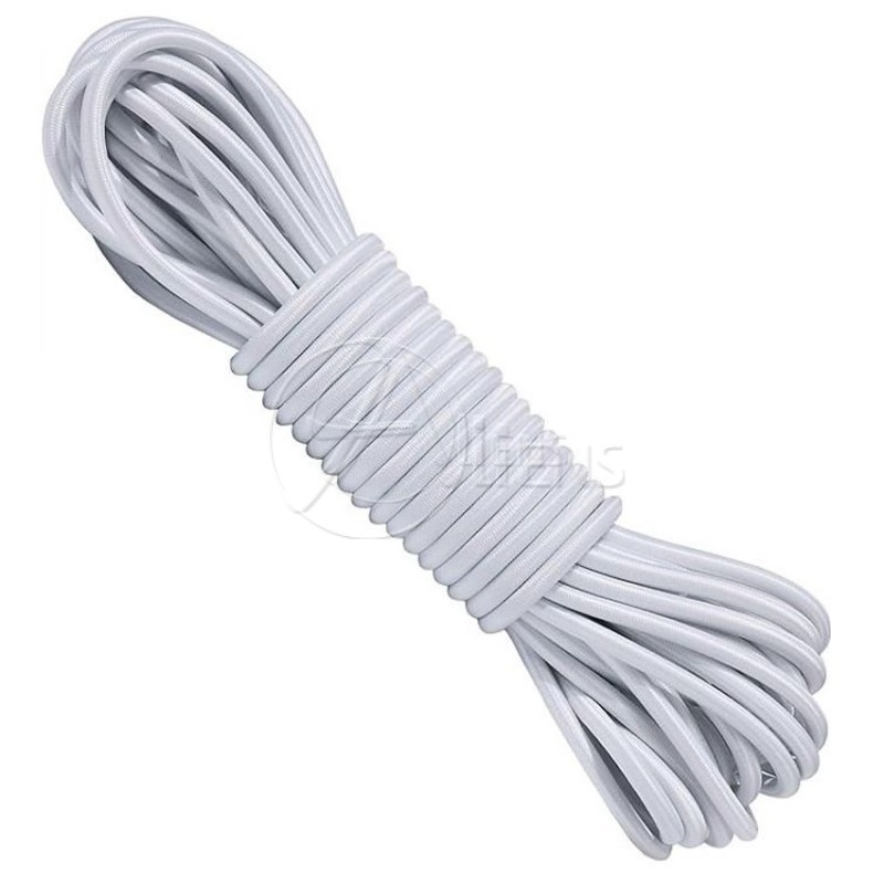 Textilummantelte Gummileine in Weiß, mit hoher Festigkeit und großer Dehnung.